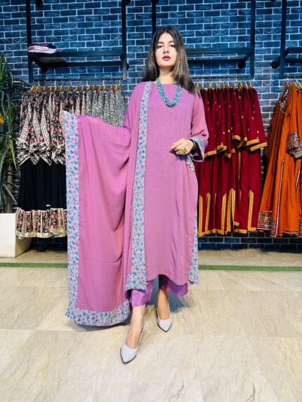 2-Piece: Usually means a shirt (kameez) + trouser (shalwar / pants), without a dupatta or shawl.