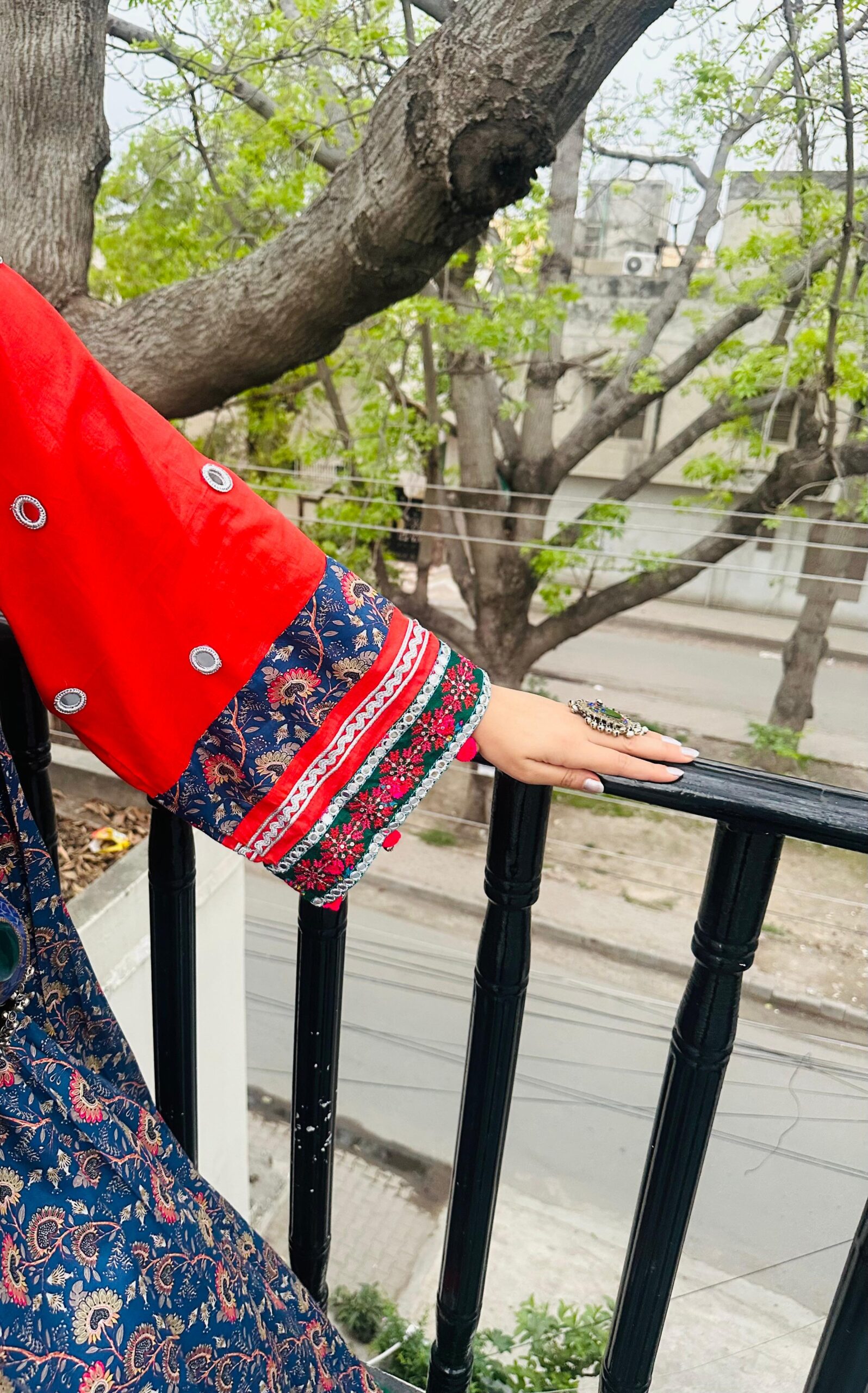 Elegant two-piece outfit, perfect for festive wear.