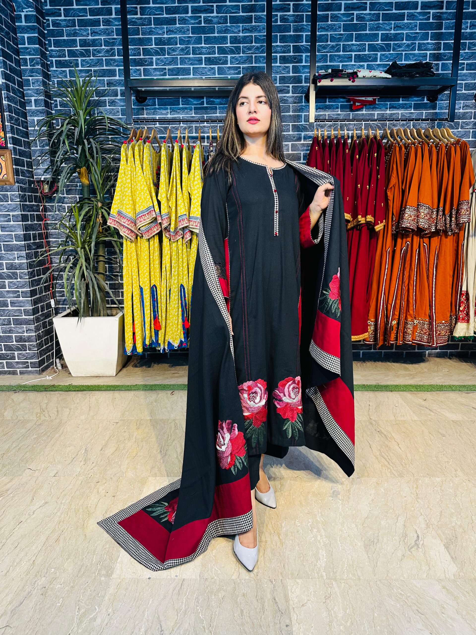 Elegant 3-piece winter outfit made from Premium Khaddar with a beautifully coded shawl. Warm, stylish, and available in all sizes.